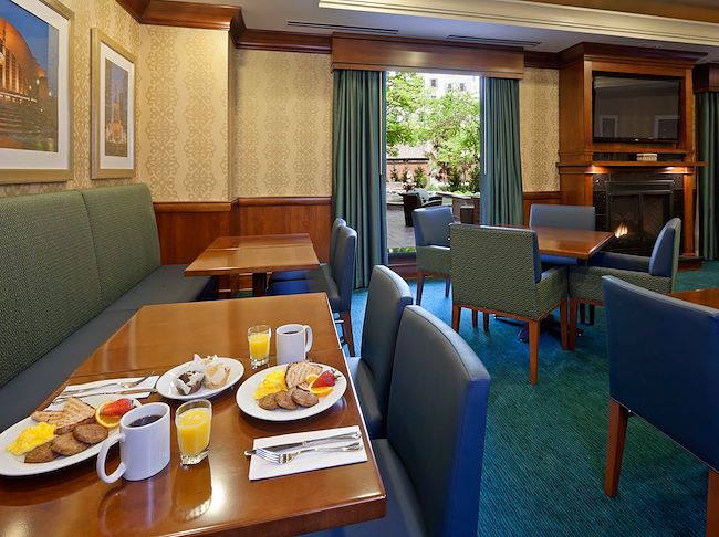 The Phelps Room offers 580 square-feet of banquet seating for up to 30 guests. The space can be set up with AV equipment and televisions for conferences or customized for an intimate wedding reception.